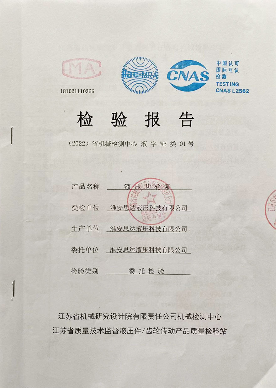 液压齿轮泵检验报告